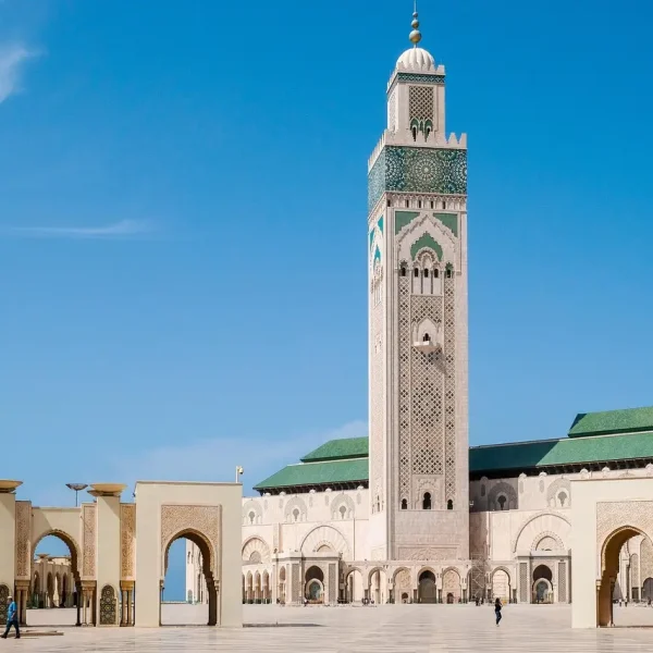 Welcome to Morocco! Upon landing in Casablanca, the country’s economic hub, begin your adventure at the Hassan II Mosque, one of the largest and most stunning mosques in the world.